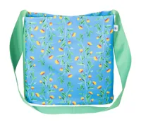 Egyedi gyártású, 600D RPET poliészter válltáska hosszú vállpánttal és gombbal. Teljes felületén szublimációs nyomtatott grafikával és megkülönböztető RPET címkével. Minimális rendelési mennyiség: 25 db.
