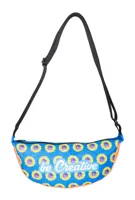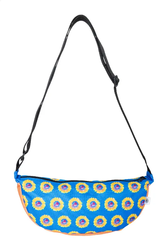 Egyedi gyártású oldaltáska 600D RPET poliészterből, állítható pánttal és cipzáras rekesszel. Teljes felületén szublimációs nyomtatott grafikával és megkülönböztető RPET címkével. Minimális rendelési mennyiség: 25 db.