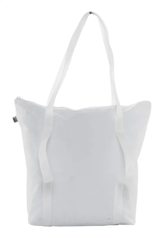 Egyedi gyártású, cipzáras válltáska 600D RPET poliészterből, jógamatrac tartó pántokkal és hosszú fülekkel. Teljes felületén szublimációs nyomtatással ellátva és megkülönböztető RPET címkével. Minimális rendelési mennyiség: 25 db.