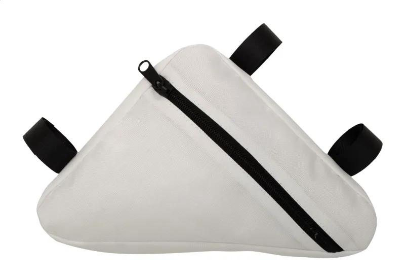 Egyedi gyártású, cipzáras, biciklivázra rögzíthető táska 600D RPET poliészterből, állítható tépőzáras pánttal. Teljes felületén szublimációs eljárással emblémázva, megkülönböztető RPET címkével. Minimális rendelési mennyiség: 25 db.