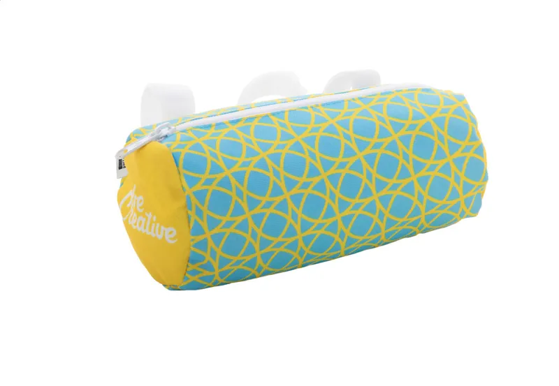 Egyedi gyártású, cipzáras, biciklikormányra rögzíthető táska 600D RPET poliészterből, állítható tépőzáras pánttal. Teljes felületén szublimációs eljárással emblémázva, megkülönböztető RPET címkével. Minimális rendelési mennyiség: 25 db.