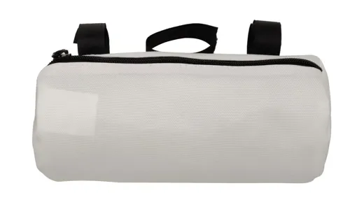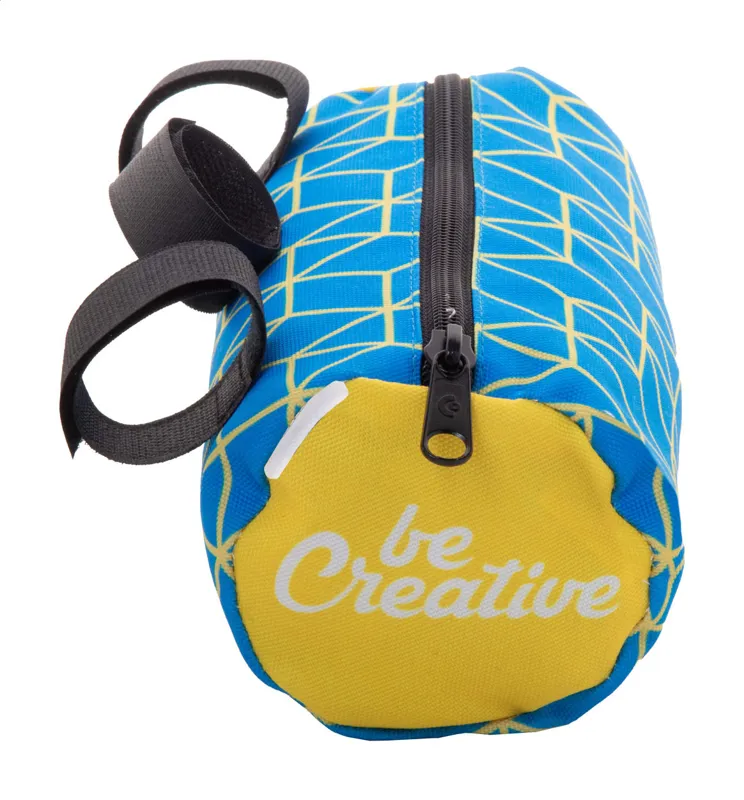 Egyedi gyártású, cipzáras, biciklikormányra rögzíthető táska 600D RPET poliészterből, állítható tépőzáras pánttal. Teljes felületén szublimációs eljárással emblémázva, megkülönböztető RPET címkével. Minimális rendelési mennyiség: 25 db.
