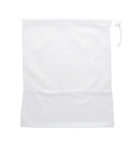 Egyedi gyártású, poliészter zacskó hálós felső résszel és húzózsinórral. Mindkét oldal alsó felületén szublimációs eljárással emblémázva. Minimális rendelési mennyiség: 50 db.