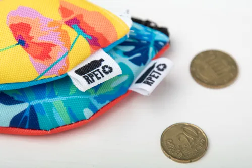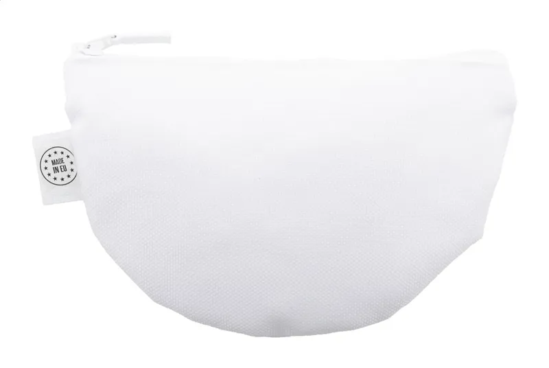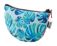 Egyediesíthető, 600D RPET poliészterből készült félkör alakú cipzáros pénztárca. Megkülönböztető RPET címkével, teljes felületén szublimációs eljárással emblémázva. Minimális rendelési mennyiség: 50 db.
