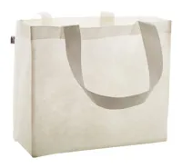 Egyedi grafikával ellátott RPET non-woven bevásárlótáska betoldással és hosszú hordfüllel, 80 g/m². Teljes felületén szublimációs eljárással emblémázva, megkülönböztető RPET címkével. Minimális rendelési mennyiség: 25 db.