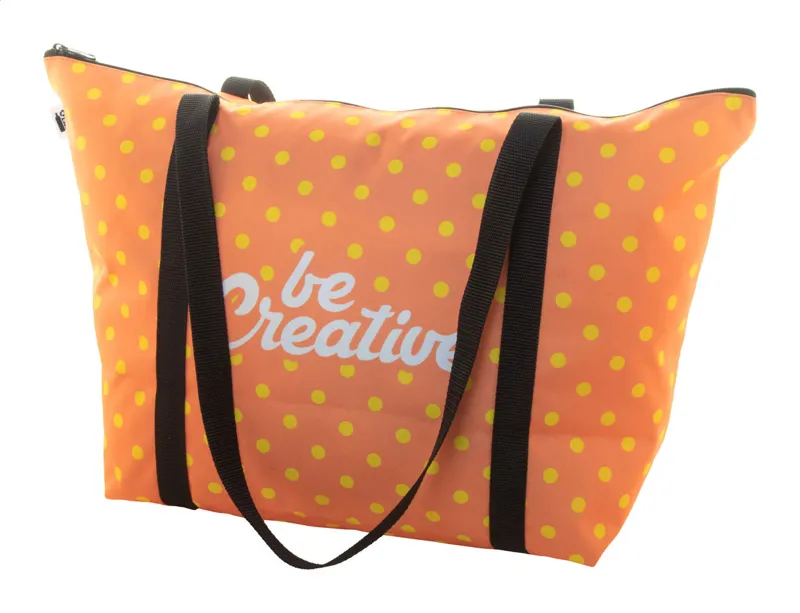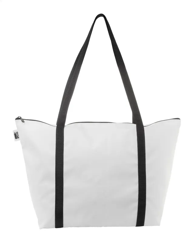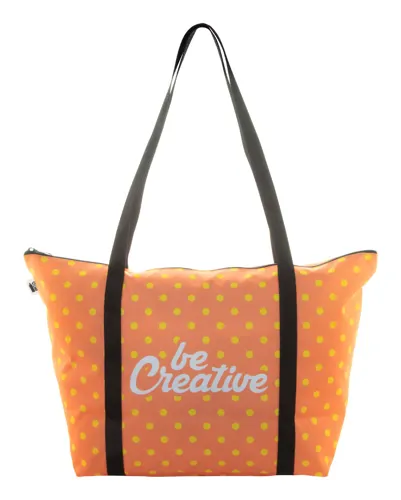 Egyedi gyártású, cipzáras strandtáska 600D RPET poliészterből, hosszú hordfüllel. Teljes felületén szublimációs eljárással emblémázva, megkülönböztető RPET címkével. Minimális rendelési mennyiség: 25 db.