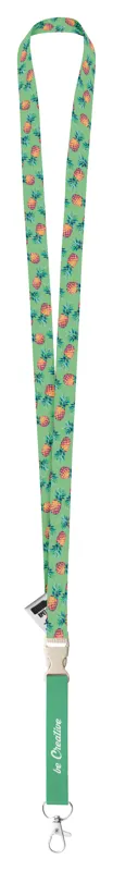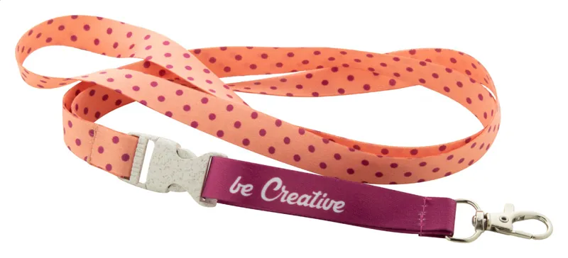 Egyedi grafikával ellátott, 15 mm széles RPET nyakpánt levehető fém karabinerrel és búzaszalma műanyag csattal. Mindkét oldalán szublimációs technológiával emblémázva. Minimum rendelési mennyiség: 100 db.