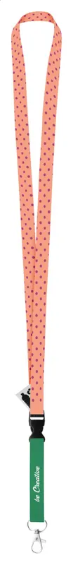 Egyedi, 15 mm széles RPET műanyag nyakpánt levehető fém karabinerrel. Szublimációs eljárással nyomtatott grafikával mindkét oldalon. Min. rendelés: 100 db.