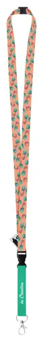 Egyedi, 15 mm széles RPET műanyag nyakpánt levehető fém karabinerrel és biztonsági csattal. Szublimációs eljárással nyomtatott grafikával mindkét oldalon. Min. rendelés: 100 db.