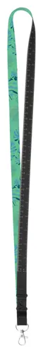 Egyedi, 15 mm széles poliészter nyakpánt. 100 cm hosszú mérőszalaggal és fém karabinerrel. Szublimációs eljárással nyomtatott grafikával az egyik oldalon. Min. rendelés: 100 db.