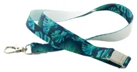 Egyedi grafikával ellátott, 15 mm széles RPET nyakpánt fém karabinerrel és búzaszalma műanyag biztonsági csattal. Egyik oldalán szublimációs technológiával emblémázva. Minimum rendelési mennyiség: 100 db.