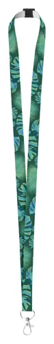 Egyedi, 15 mm széles műanyag nyakpánt fém karabinerrel és biztonsági csattal. Szublimációs eljárással nyomtatott grafikával az egyik oldalon. Min. rendelés: 100 db.