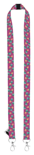 Egyedi, RPET műanyag nyakpánt 2 fém karabinerrel és biztonsági csattal. Szublimációs eljárással nyomtatott grafikával mindkét oldalon. Min. rendelés: 100 db.