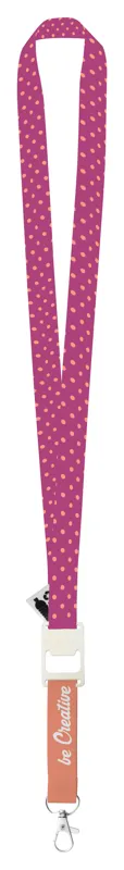 Egyedi gyártású RPET poliészter nyakpánt fém karabinerrel és üvegnyitóval. Mindkét oldalán szublimációs technológiával emblémázva. Minimális rendelési mennyiség: 100 db.