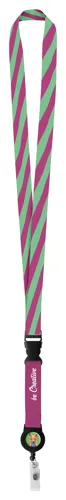 Egyedi, műanyag nyakpánt levehető, kihúzható bérlettartóval. Szublimációs eljárással nyomtatott grafikával mindkét oldalon. Min. rendelés: 100 db.