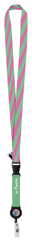 Egyedi, RPET műanyag nyakpánt levehető, kihúzható bérlettartóval. Szublimációs eljárással nyomtatott grafikával mindkét oldalon. Min. rendelés: 100 db.