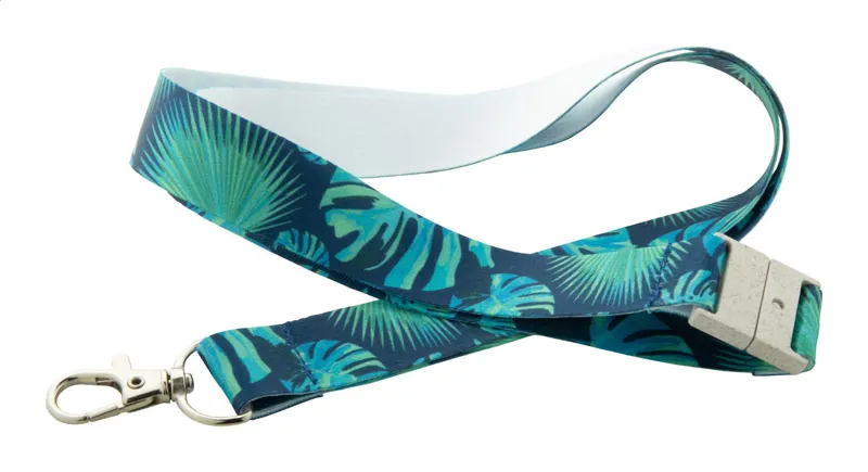 Egyedi grafikával ellátott RPET nyakpánt fém karabinerrel és búzaszalma műanyag biztonsági csattal. Egyik oldalán szublimációs technológiával emblémázva. Minimum rendelési mennyiség: 100 db.