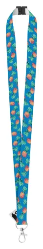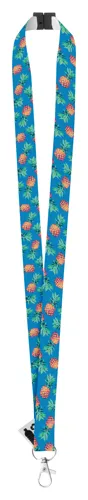 Egyedi grafikával ellátott RPET poliészter nyakpánt fém karabinerrel és biztonsági csattal. Egyik oldalán szublimációs technológiával emblémázva. Minimum rendelési mennyiség: 100 db.