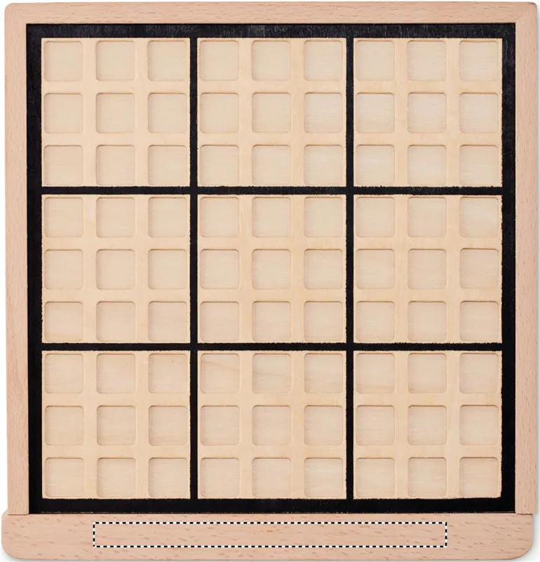 Deluxe fa sudoku tábla. Tartalmaz 99 számozott fa lapkát. Játékleírással, feladványokkal és megoldásokkal.