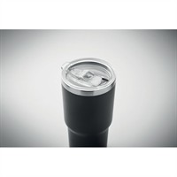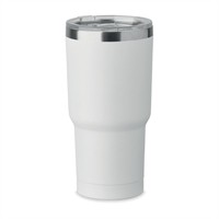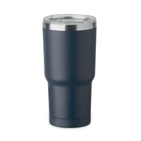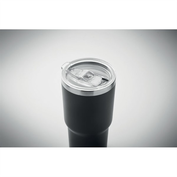 Duplafalú pohár újrahasznosított rozsdamentes acélból (90% újrahasznosított rozsdamentes acél és 10% rozsdamentes acél). Fedél csúsztatható ivónyílással. Szivárgásmentes. Űrtartalom: 550 ml.
