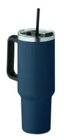 Duplafalú, újrahasznosított rozsdamentes acél pohár, beépített PE- szívószálas fedéllel. Űrtartalom 1200 ml. (90% újrahasznosított rozsdamentes acél és 10% rozsdamentes acél).