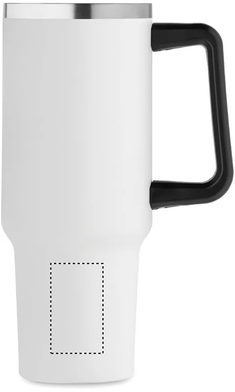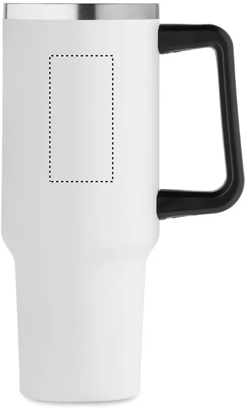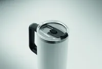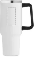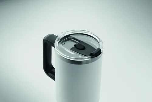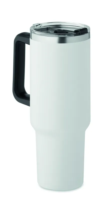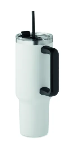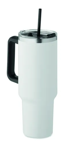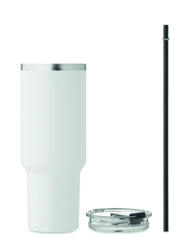 Duplafalú, újrahasznosított rozsdamentes acél pohár, beépített PE- szívószálas fedéllel. Űrtartalom 1200 ml. (90% újrahasznosított rozsdamentes acél és 10% rozsdamentes acél).