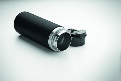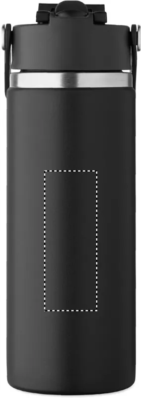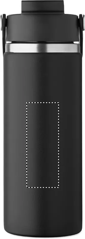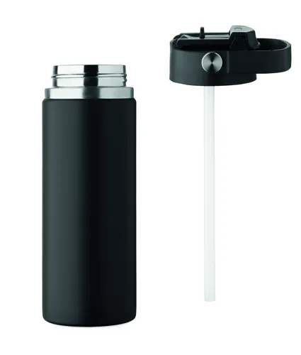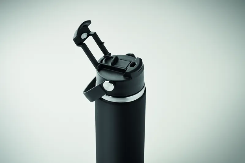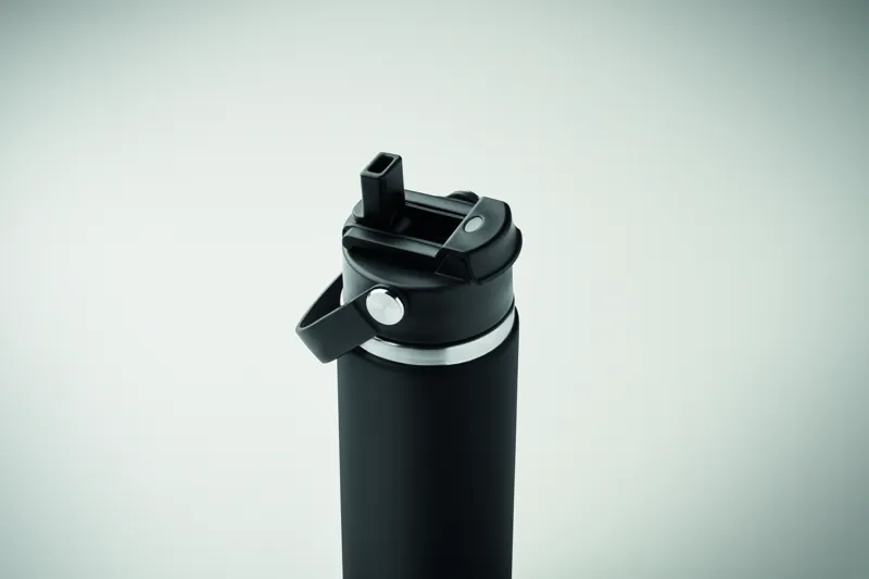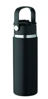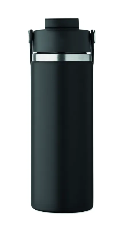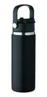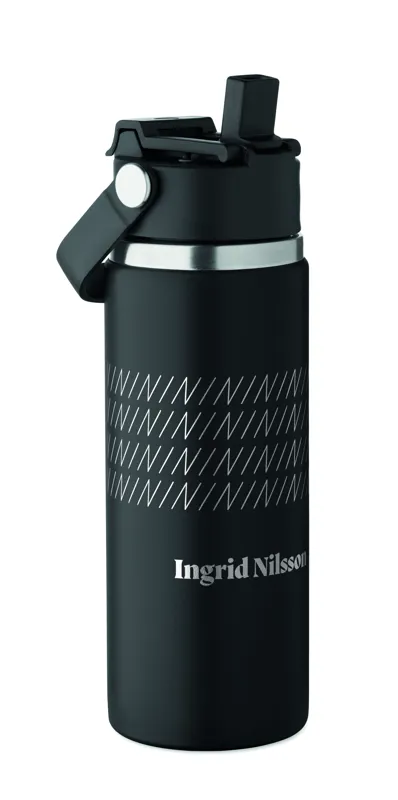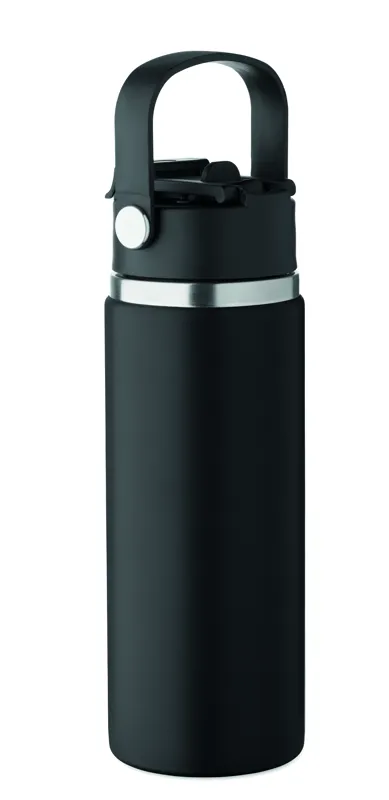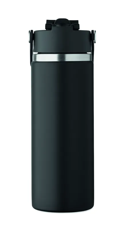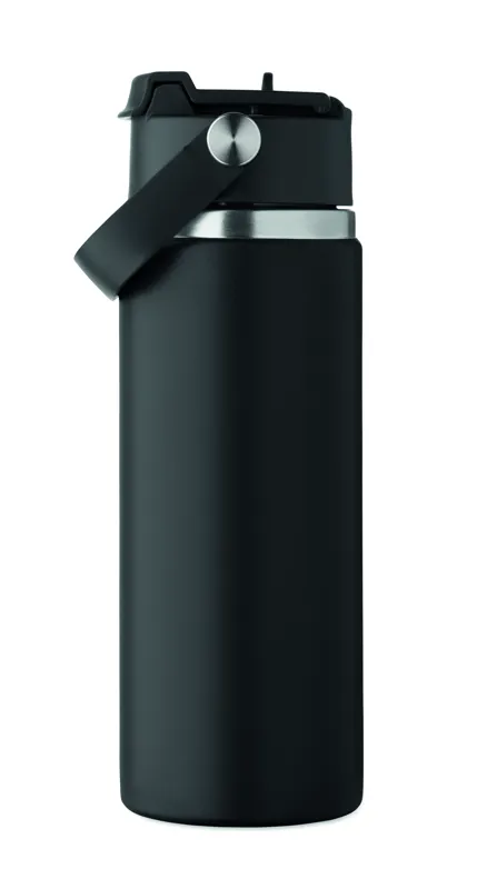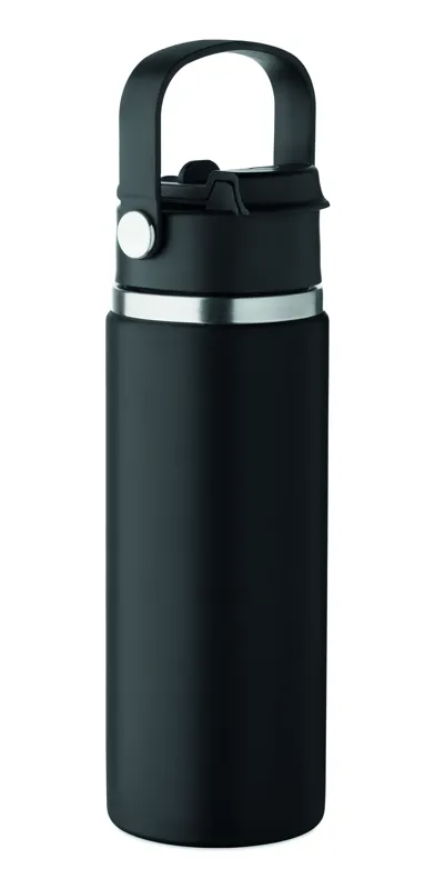 Duplafalú termoszpalack újrahasznosított rozsdamentes acélból (90% újrahasznosított és 10% rozsdamentes acél), szívószálas és ivónyílásos fedéllel, fogantyúval. Szivárgásmentes. Űrtartalom: 500 ml.