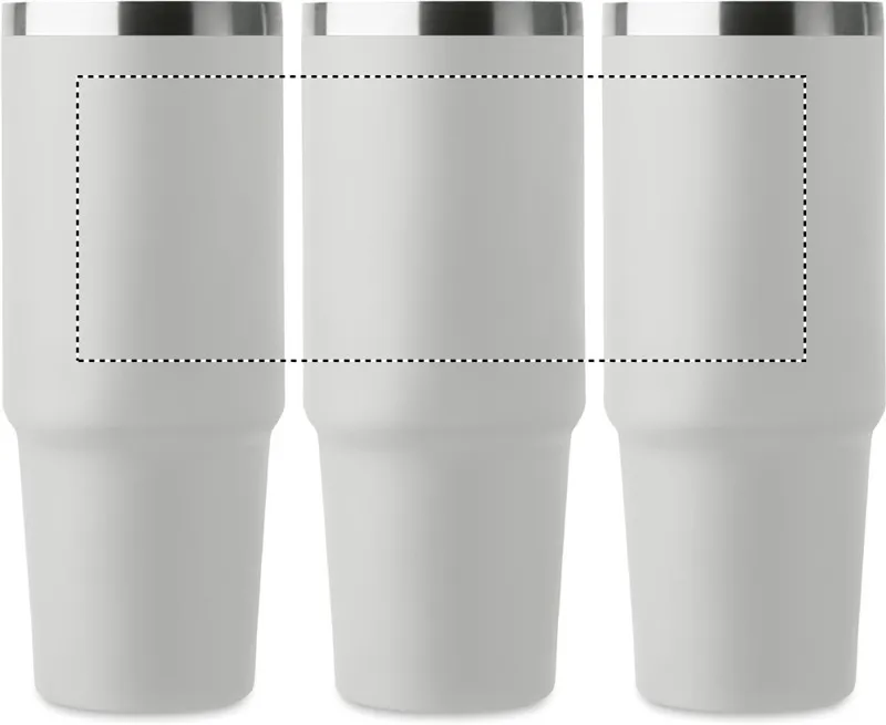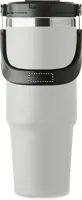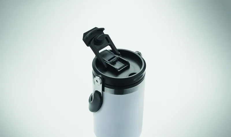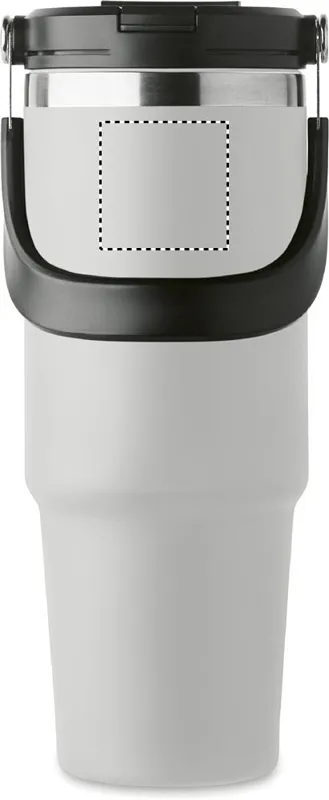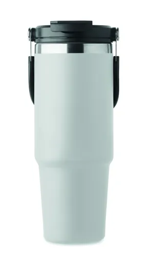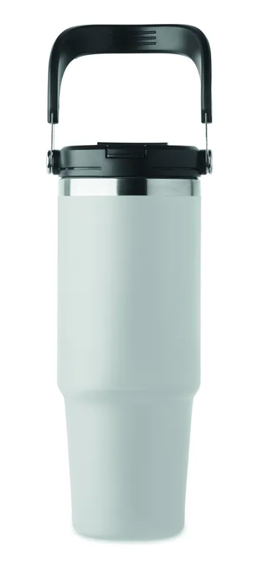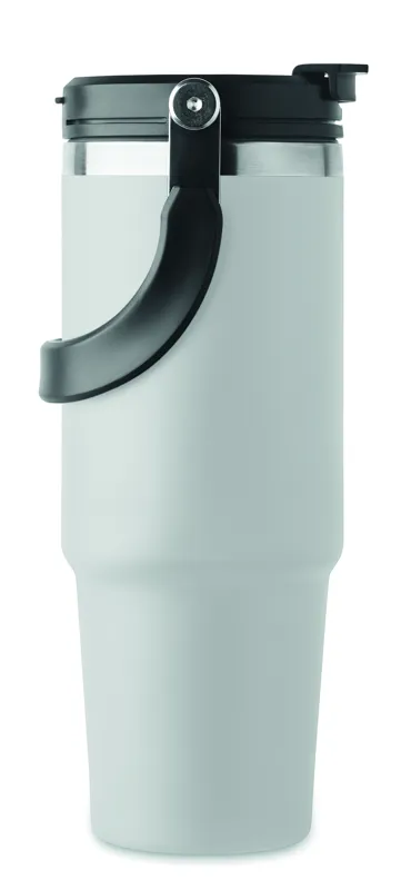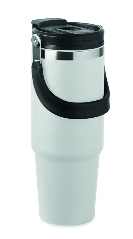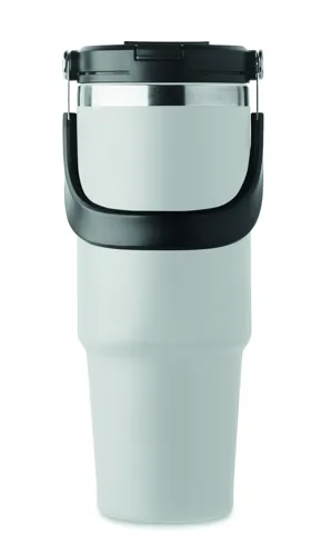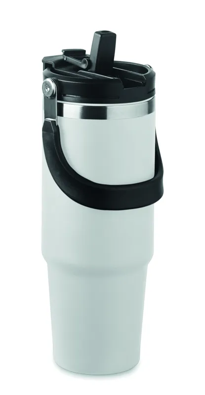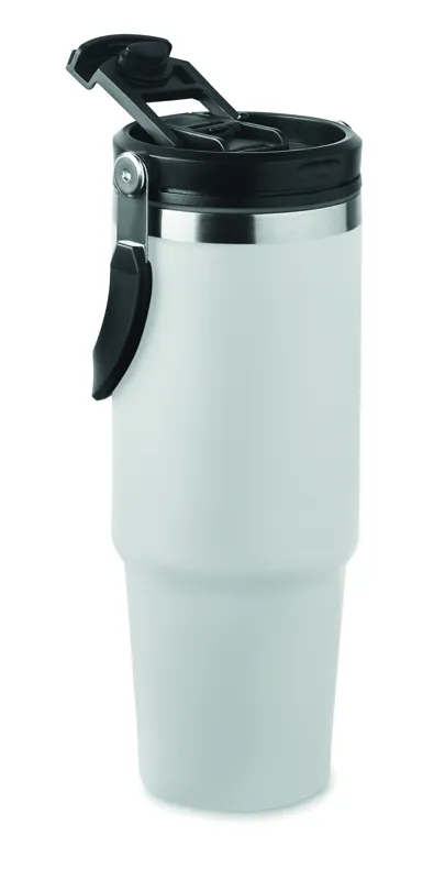 Duplafalú pohár újrahasznosított rozsdamentes acélból (90% újrahasznosított rozsdamentes acél és 10% rozsdamentes acél). Fedél belső szívószállal, kihajtható valamint nyitható ivónyílással. Űrtartalom: 850 ml.