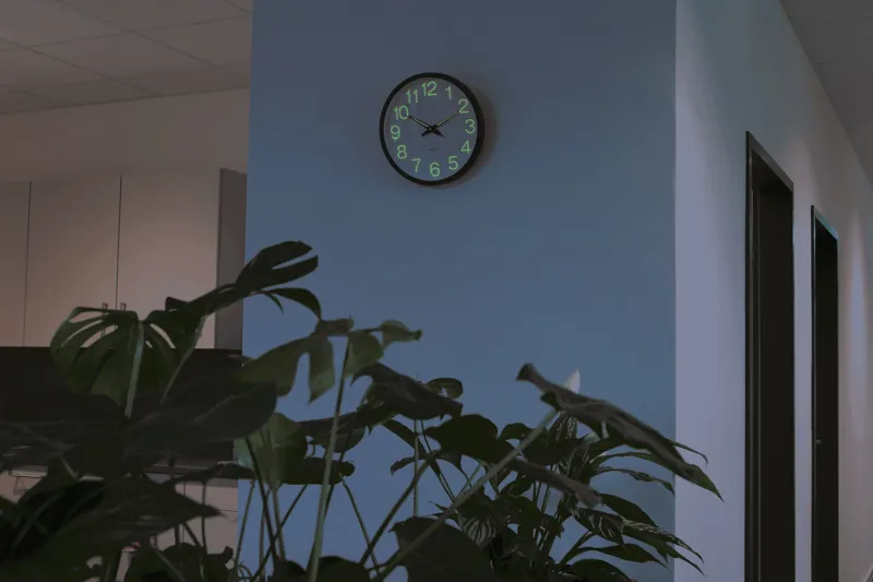 SUN falióra: kvarckristály oszcillátorral, analóg óralappal, fluoreszkáló számjegyekkel és mutatókkal (éjszaka világít), 1 db AA elemmel működik, amely nem tartozék