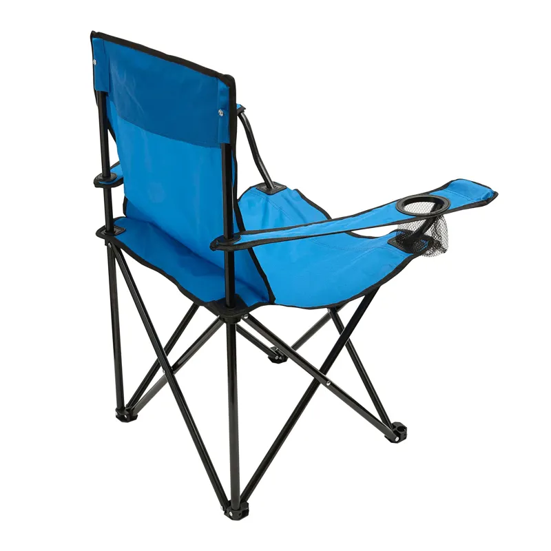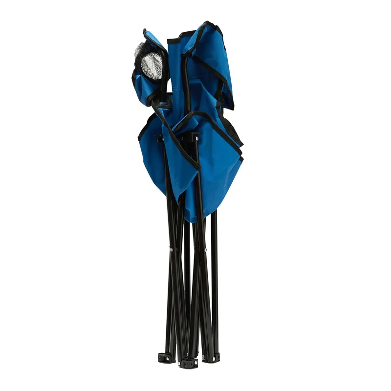 SUNNY DAY strand- és kempingszék: összecsukható szék praktikus italtartóval a jobb kartámaszban, stabil és könnyű, terhelhetősége kb. 90-100 kg, poliészter tárolótáska hordozóhurokkal