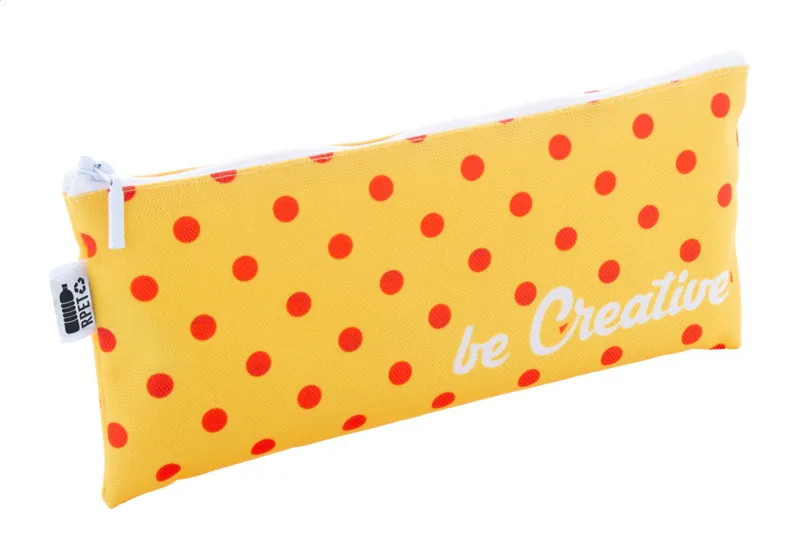 Egyediesíthető cipzáras tolltartó, 600D RPET poliészter. Az ár tartalmazza a szublimációs emblémázás költségét a termék mindkét oldalán és az egyedi RPET címkét. Minimális rendelési mennyiség: 50 db.