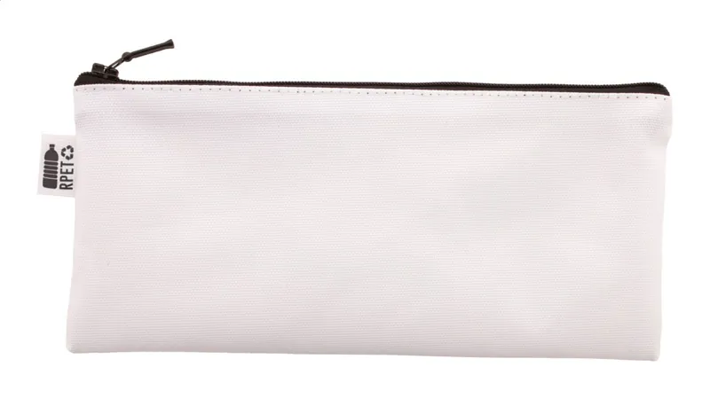 Egyediesíthető cipzáras tolltartó, 600D RPET poliészter. Az ár tartalmazza a szublimációs emblémázás költségét a termék mindkét oldalán és az egyedi RPET címkét. Minimális rendelési mennyiség: 50 db.