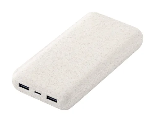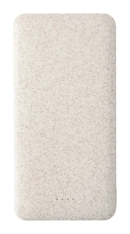 Ökológiai búzaszalma műanyag USB power bank 20000 mAh akkumulátorral. 2 USB és 1 USB-C töltőporttal és USB-C bemeneti porttal.