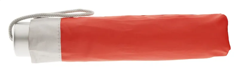 8 paneles, kívül színes, belül ezüst színű, összecsukható, csuklópánttal ellátott, manuális esernyő, fém fogantyúval. 170T poliészter.