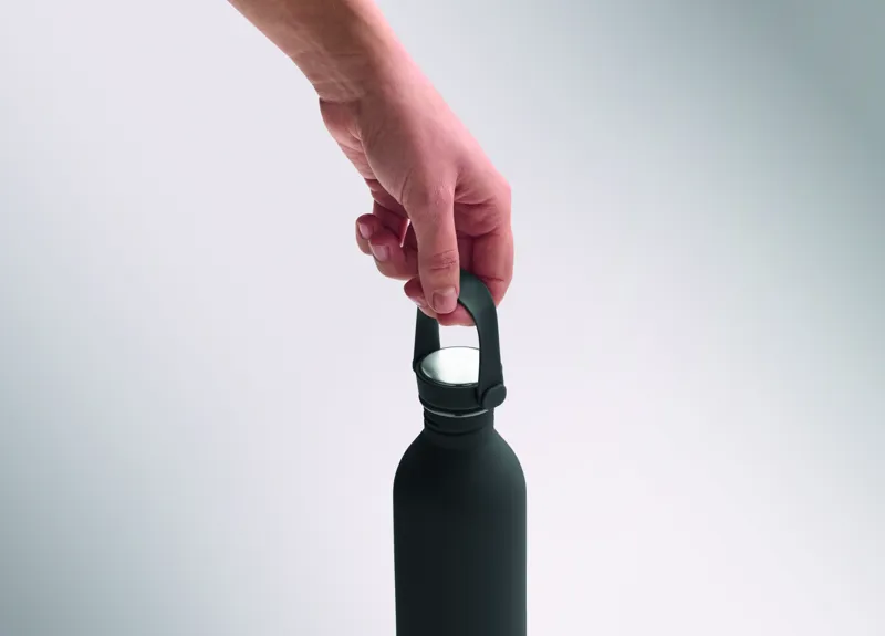 90% újrahasznosított rozsdamentes acél és 10% acél szimplafalú palack, gumírozott felülettel. PP és rozsdamentes acél fedél, szilikon fogantyú. Űrtartalom: 500 ml. Szimplafalú, hőátadás előfordulhat.