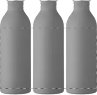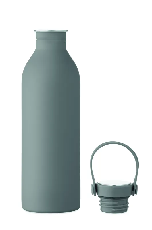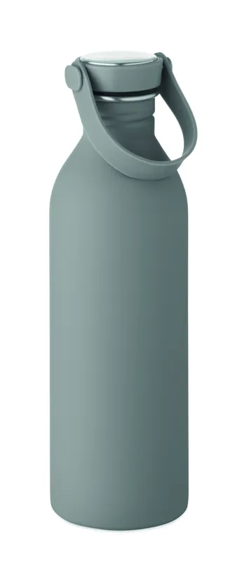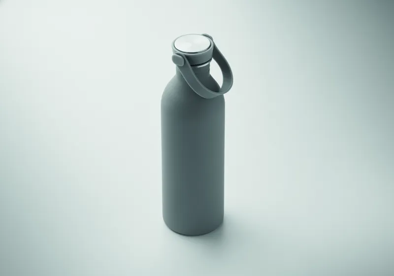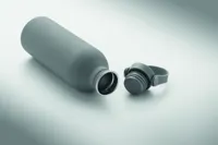90% újrahasznosított rozsdamentes acél és 10% acél szimplafalú palack, gumírozott felülettel. PP és rozsdamentes acél fedél, szilikon fogantyú. Űrtartalom: 500 ml. Szimplafalú, hőátadás előfordulhat.