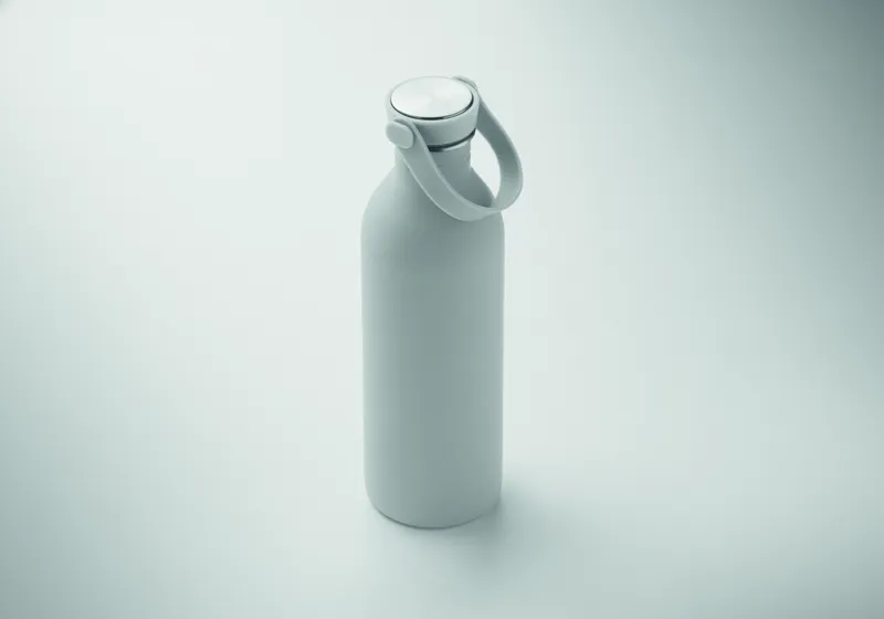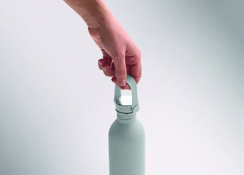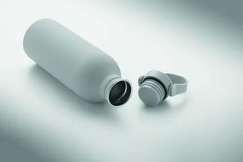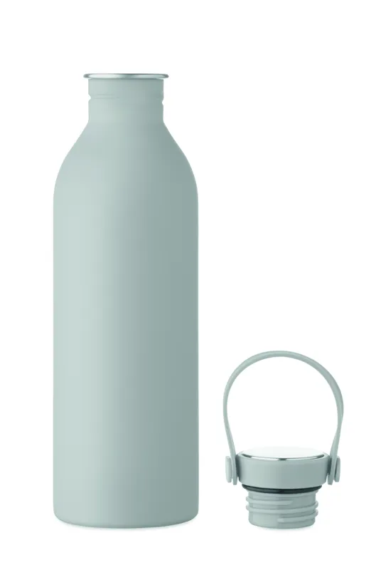 90% újrahasznosított rozsdamentes acél és 10% acél szimplafalú palack, gumírozott felülettel. PP és rozsdamentes acél fedél, szilikon fogantyú. Űrtartalom: 500 ml. Szimplafalú, hőátadás előfordulhat.