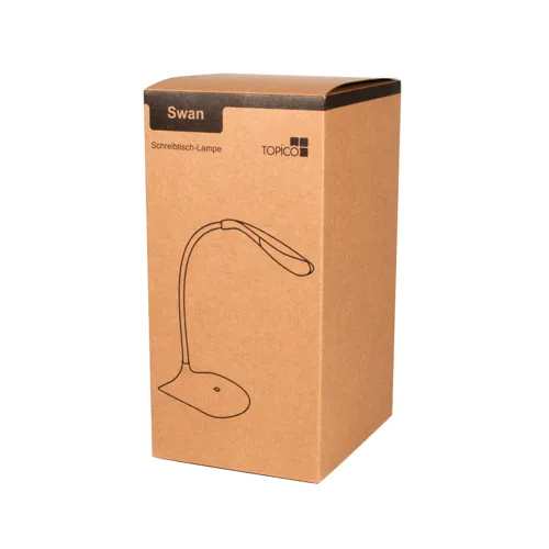 SWAN asztali lámpa: rugalmas forgó nyakkal, 14 db LED-del, 3 fokozatú fényerő állítási funkcióval, érintés érzékeny vezérlés, USB kábellel tölthető (kb. 120 cm), mobil használat a beépített akkumulátornak köszönhetően, fogyasztás akár 1,5 Watt, gumírozott lábbal a biztos tapadásért, ajándékdobozban