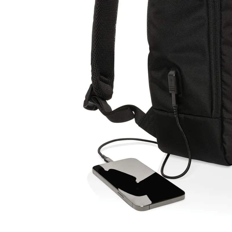Hátizsák egy nagy főrekesszel a 15,6 hüvelykes laptop számára valamint egy elülső rekesszel. Csatlakoztassa powerbankjét a beépített USB C töltőporthoz és töltse fel telefonját vagy tabletjét útközben. AWARE™ nyomjelzővel ami igazolja az újrahasznosított anyagok valódi használatát. Minden táska 28,7 db 0,5 literes PET palackból készül. Minden eladott Impact termék után 2%-kal támogatjuk a Water.org nonprofit szervezetet. PVC-mentes.