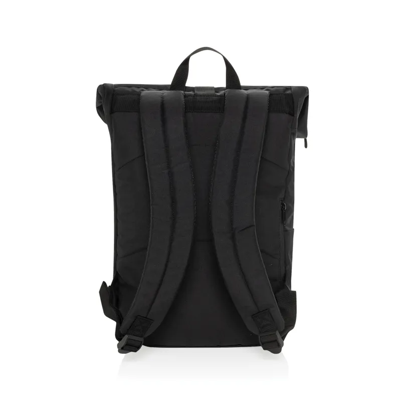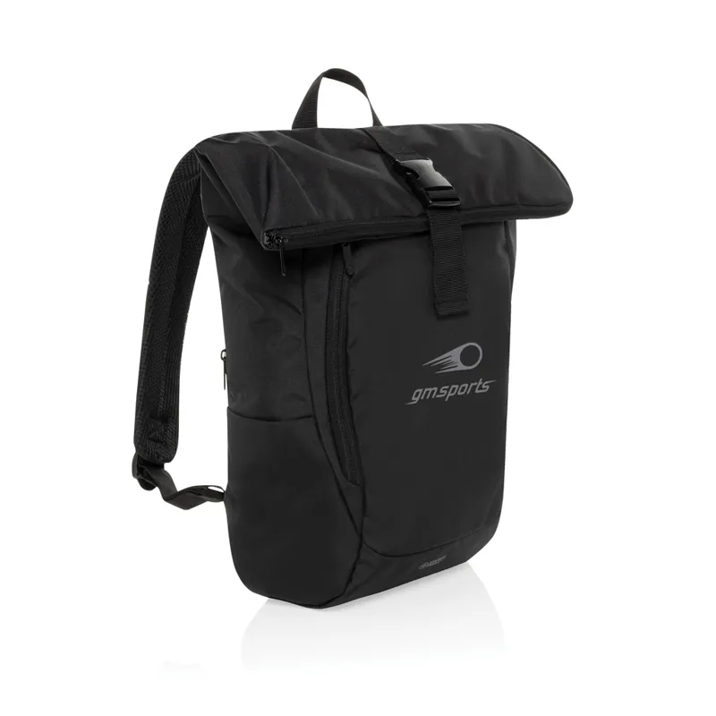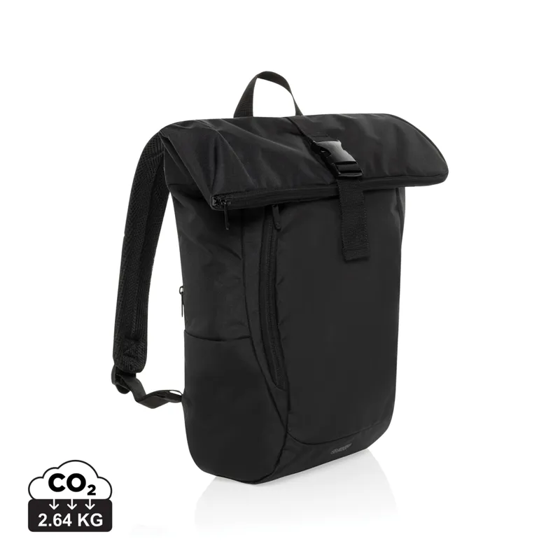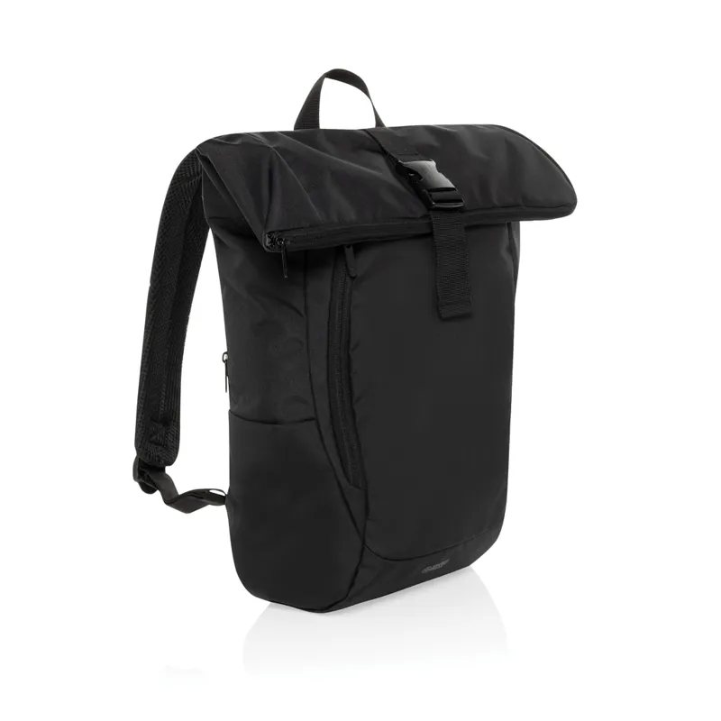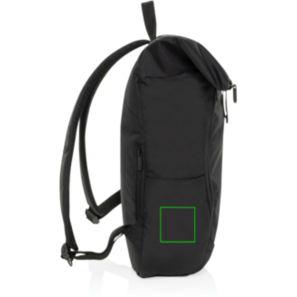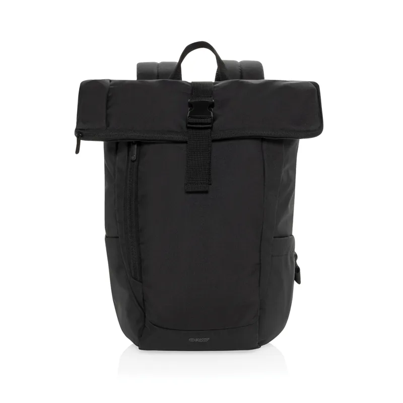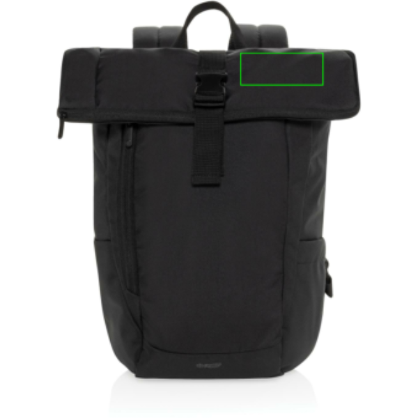 A stílus és a funkcionalitás tökéletes ötvözete. Ez a 100% rPET-ből készült, divatos hátizsák állítható vállpántokkal és egyedi patentos kialakítással rendelkezik, amely szükség esetén 14 cm-es extra magasságot biztosít. A fő rekesz L alakban nyílik a könnyű hozzáférés érdekében, a hevederek és csatos zárak pedig további biztonságot nyújtanak. Belsejében kényelmesen elfér egy 15,6-es laptop, amelyet tépőzár rögzít, valamint egy kényelmes belső cipzáras zseb. Elülső cipzáras rekesszel, italtartó zsebbel és hevederes fogantyúval, így üzleti és mindennapi használatra ideális. Újrahasznosított poliészterből készült, AWARE™ nyomjelzővel. Minden eladott AWARE™ termék után 2%-kal támogatjuk a Water.org nonprofit szervezetet. PVC-mentes.