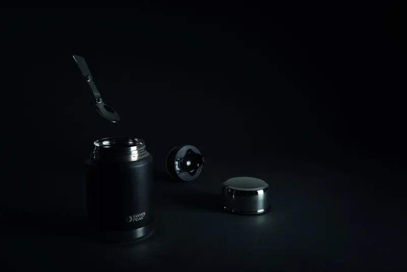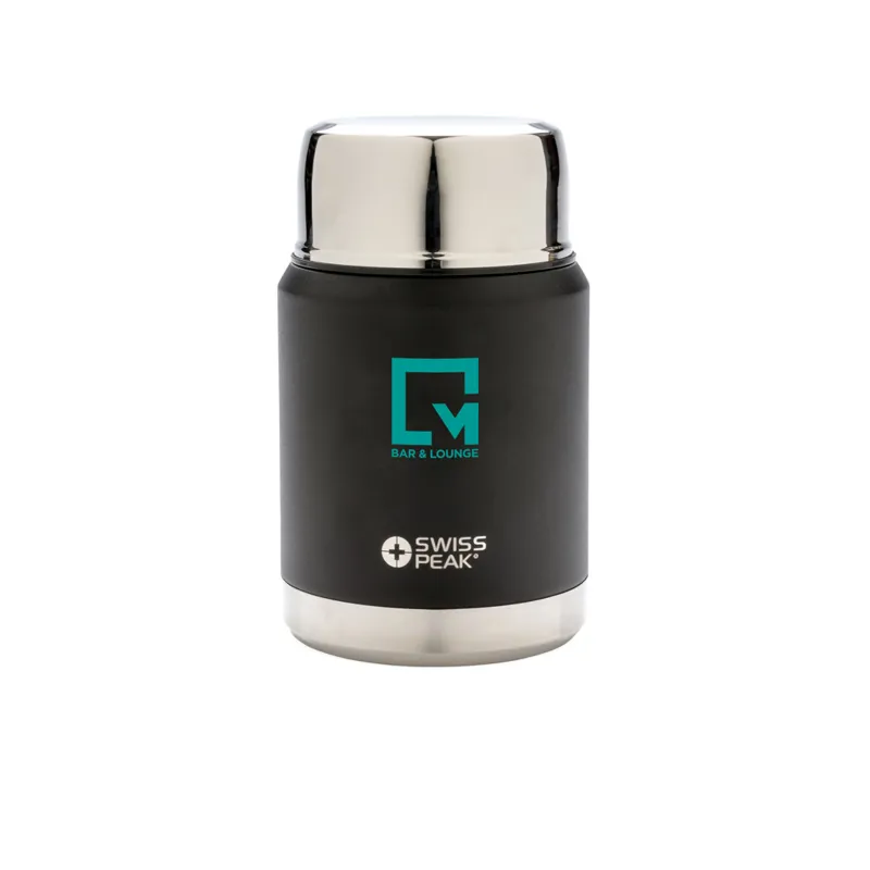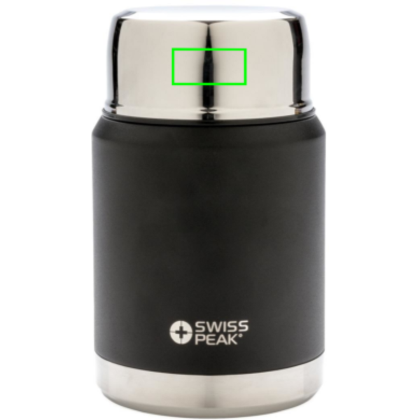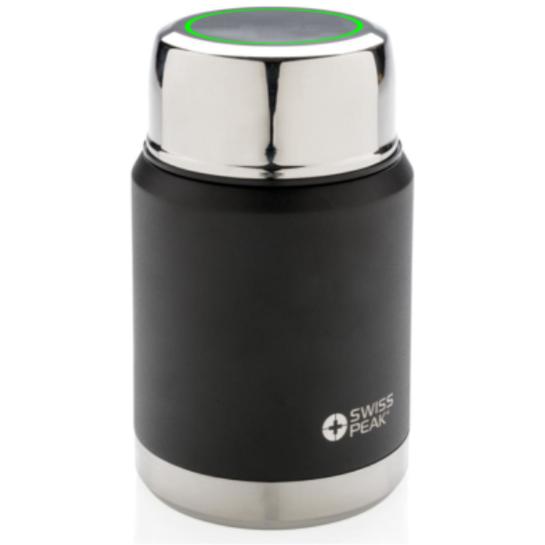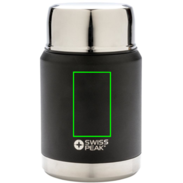 A Swiss Peak Elite sorozat vákuum szigetelésű és duplafalú, anyaga 18/8 fokozatú rozsdamentes acél. A szemcsés borítású fekete felület időtálló: nem fakul ki vagy törik meg! Rézből készült belső falának köszönhetően akár 8 órán keresztül melegen tartja az ételt valamint akár 24 órán keresztül hidegen. Egy 18/8 rozsdamentes acélból készült kanállal érkezik. Kizárólag kézzel mosható. Szivárgásmentes. Űrtartalma: 500ml.