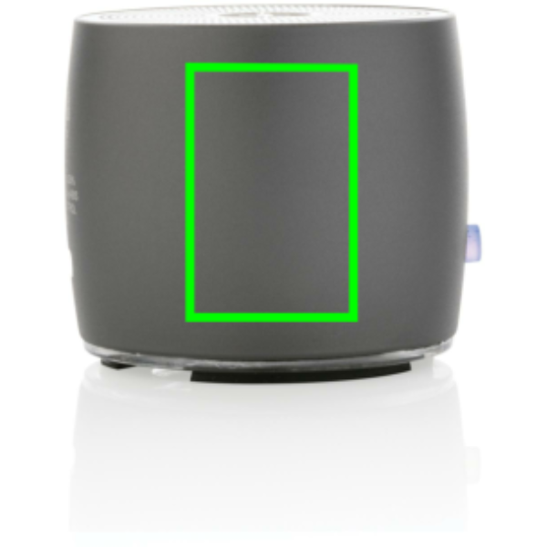 Kis méretű ugyanakkor nagy teljesítményű, 3W-os, vezeték nélküli hangszóró RCS (Recycled Claim Standard) újrahasznosított alumíniumból és újrahasznosított ABS-ből. Teljes újrahasznosított anyag tartalom: 28% a termék összsúlya alapján. Az RCS-tanúsítvány biztosítja az újrahasznosított anyagok ellátási láncát. Az alumínium nem veszíti el tulajdonságait az újrahasznosítási folyamat során és végtelenül újrahasznosítható. RCS újrahasznosított TPE-ből készült, újrahasznosított C típusú töltőkábellel. FSC® mix csomagolásban. Az 500 mAh-s akkumulátor akár 4 órás lejátszási időt tesz lehetővé és 2 óra alatt teljesen újratölthető. 5.0 vezeték nélküli kapcsolattal a zökkenőmentes csatlakoztatásért 10 méterig. A termék és tartozékai PVC-mentesek.