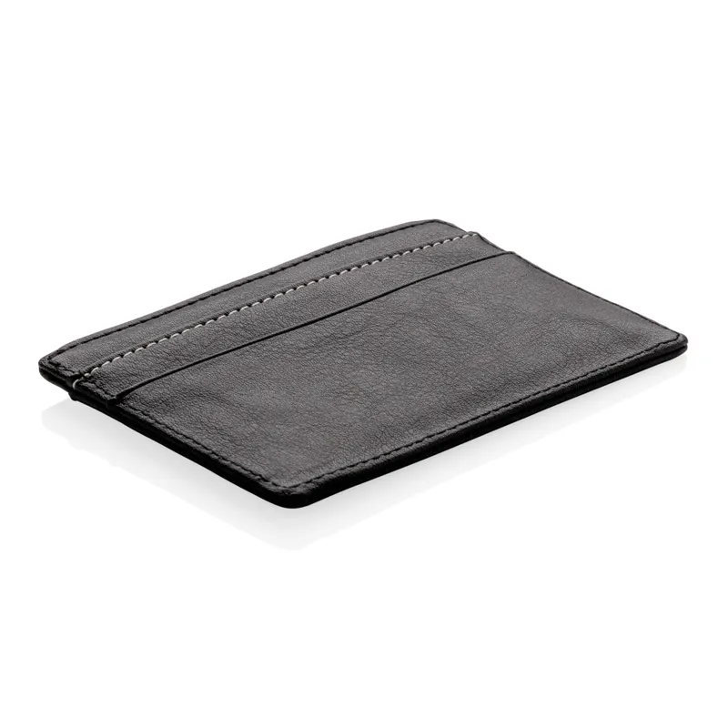 Elegáns, PU bőr kártyatartó 3 rekesszel legfeljebb 8 kártya biztonságos, leolvasást megakadályozó tárolására. Középső zsebébe pénz rakható. Minden ismert RFID/NFC frekvencia blokkolására alkalmas.