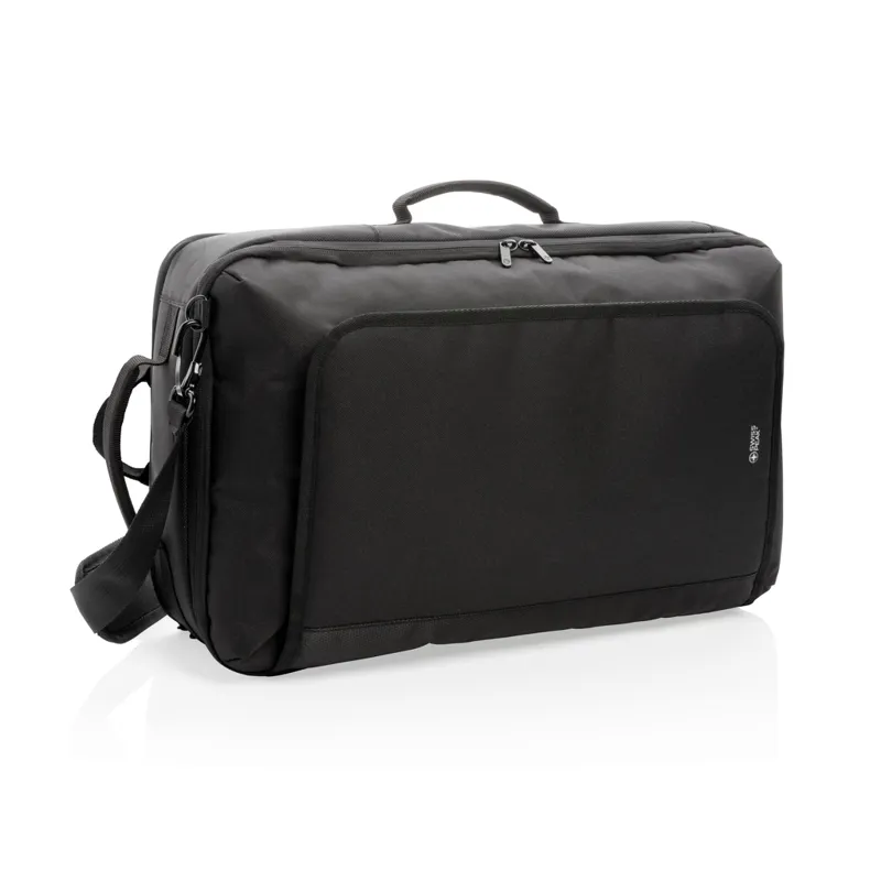 Lépjen túl minden határt ezzel a többfunkciós hátizsákkal. A funkciónális előnyök és az üzleti kialakításnak köszönhetően a legmegfelelőbb mindennapi választás! 4 az 1-ben. 1: Hátizsák: A párnázott pántok a gyűrűkbe akaszthatóak majd a megfelelő hossz beállítása után a táska hátizsákként használható. 2: Válltáska: A hátizsákos pántok kiakaszthatóak és a táska hátuljába csúsztathatóak. A vállpánt rögzítése után a táska válltáskaként is használható. 3: Féloldalas hordás: Ha nehéz a táska a vállpánt átcsatolásával a testen keresztbe is hordható a kényelmesebb és handsfree viselet érdekében. 4: Kézitáska: A vállpántok eltávolítása után a táska tetején vagy oldalán található fogók segítségével a táska kézben is hordható. Hátulján 15.6"-os laptoptartó rekesszel. Tágas főrekesszel valamint elülső, cipzáros zsebbel. RFID védelemmel rendelkező zsebekkel. A bőrönd fogójára illeszthető. PVC-mentes.