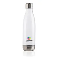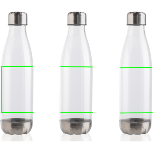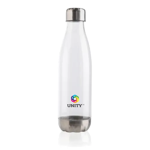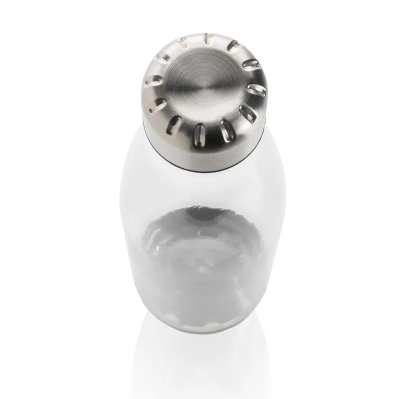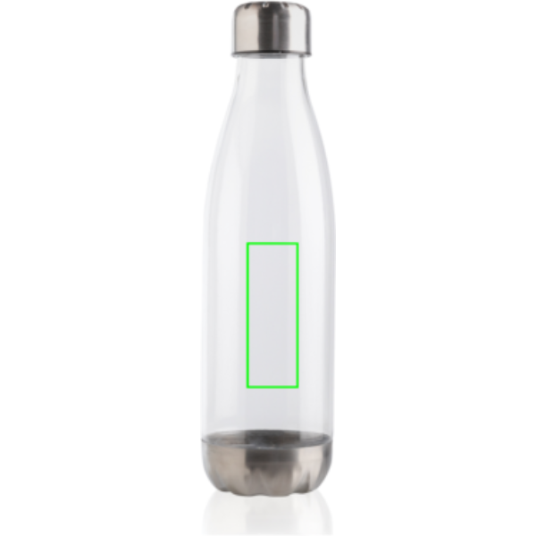 Szivárgásmentes vizespalack rozsdamentes acél kupakkal és aljjal, a palack teste átlátszó. Alja beleillik a legtöbb pohártartóba. Űrtartalma: 500 ml. BPA-mentes.