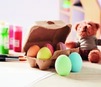6 darabos, tojás alakú aszfaltkréta készlet újrahasznosított karton tojástartóban.