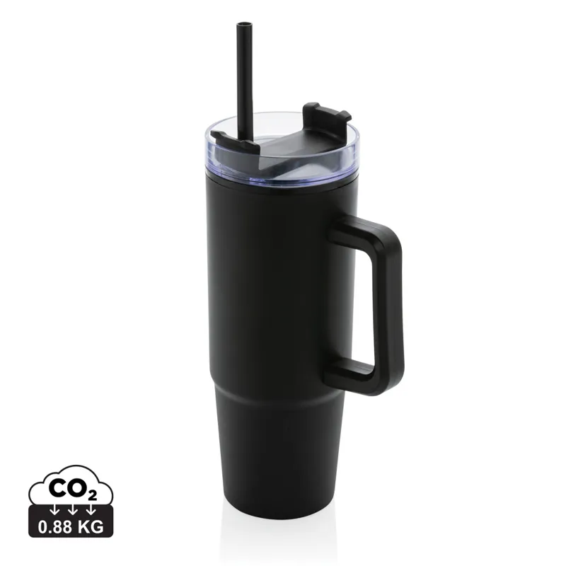 Bemutatjuk a Tana duplafalú, 750 ml-es műanyag poharat, amely 42% újrahasznosított anyagból készült az alacsony ökológiai lábnyomú hidratálás érdekében. Akár dolgozik, akár edz, akár utazik, ideális társ. A korszerűsített fedél három pozícióval rendelkező, forgó kupakkal rendelkezik: kiömlésálló szívószálnyílás, kortyolásra alkalmas nyílás és teljesen zárt fedél. Az ergonomikus markolat kényelmes fogású betétekkel biztosítja a könnyű hordozhatóságot, a vékony talp pedig a legtöbb autós pohártartóhoz illeszkedik. Csak kézi mosás. Teljes újrahasznosított anyagtartalom: 42% a termék összsúlya alapján. BPA-mentes. Űrtartalom: 750 ml. FSC® kraft ajándékcsomagolásban.