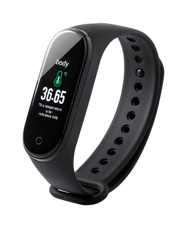 Többnyelvű, vezeték nélküli okosóra pulzus- és hőmérővel, 0,96" TFT kijelzővel és TPU szíjjal. USB töltőkábelt tartalmaz.