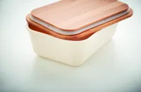 Ebéd- vagy uzsonnásdoboz PP-ből, bambuszfedéllel. A bambusz természetes anyag, színében, mintázatában és méretében esetenként eltérő lehet.