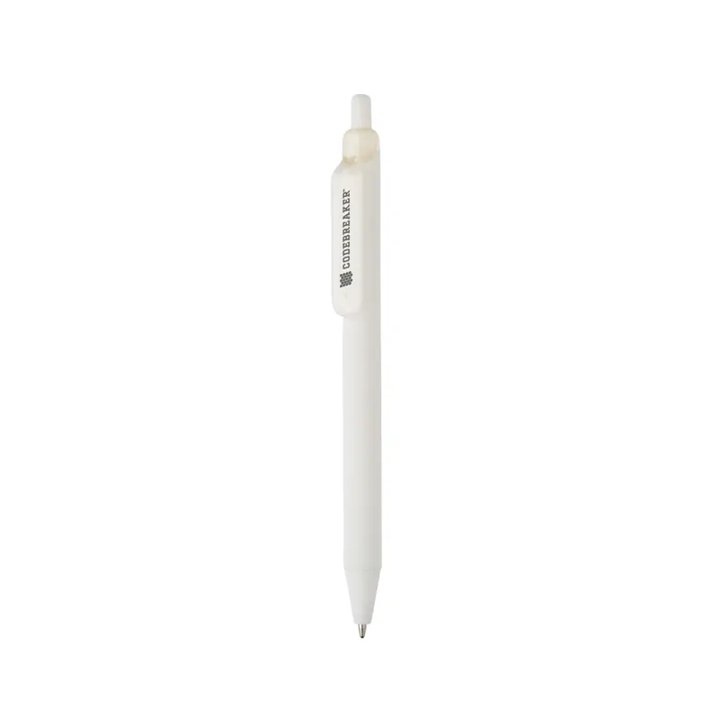 Egyedi kialakítású, egy nyakkendőt viselő tollra emlékeztet, ha jobban megnézzük a klipszet és a tollszárat. A 91% újrahasznosított ABS-ből készült toll a tartósságot és a stílust ötvözi. Sima, gumírozott szilikon markolattal a tollszár körül a további kényelem érdekében ezáltal is biztosítva a prémium írásélményt. A dugattyú, a klipsz és a tollhegy matt bevonata elegáns megjelenést kölcsönöz, míg a kék tinta egyenletesen írást biztosít akár 1200 méterig. A könnyű használat érdekében kattanó mechanizmussal működik.